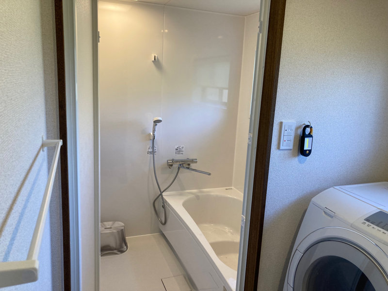 決めては乾燥式ドラム洗濯機があることでしたが、他にも炊飯器、コンロ、食器・調理器具や調味料などあり、長期滞在で自炊する人には向いていると思います。