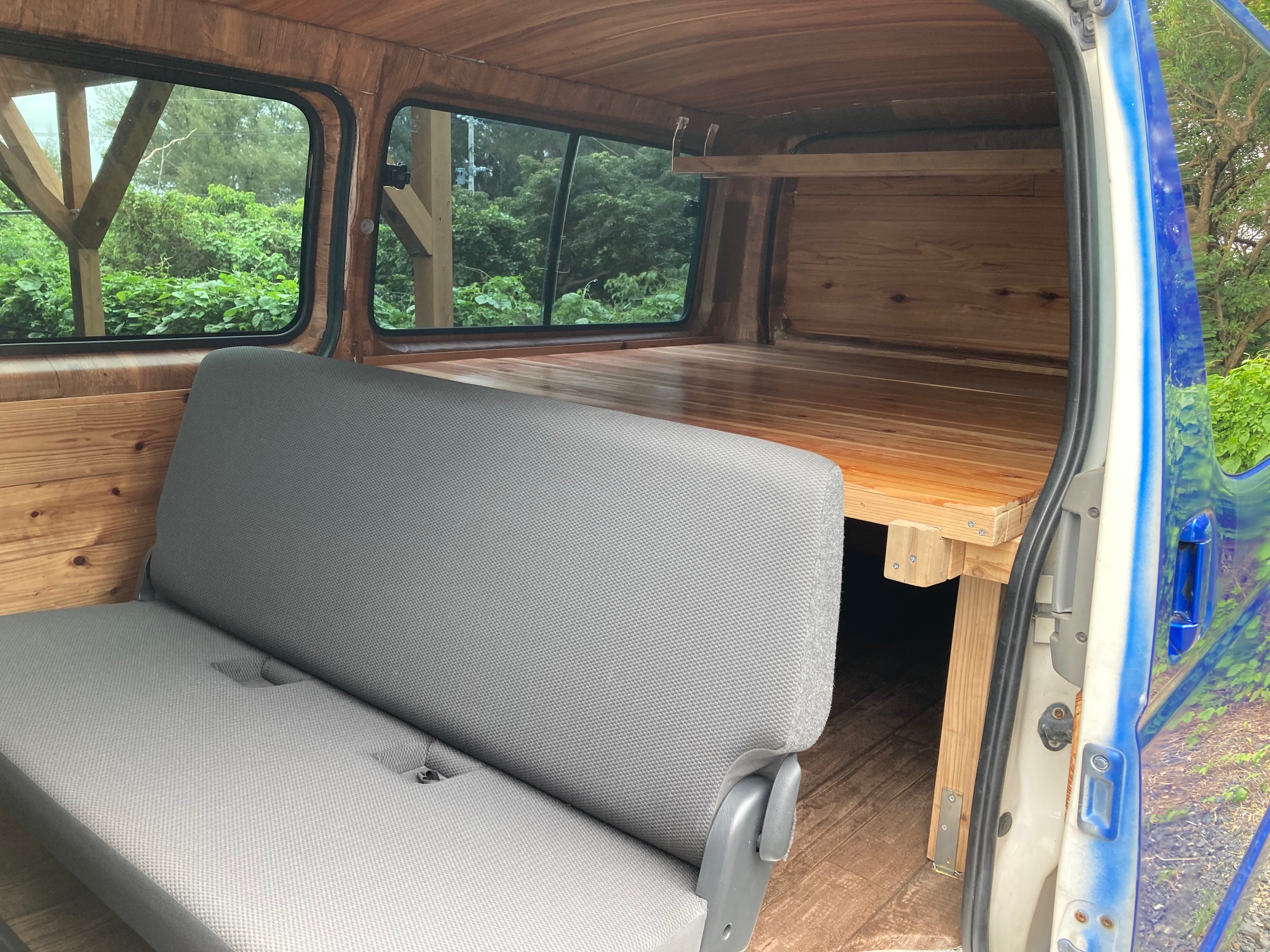 カスタムハイエースはサーフボードや自転車などのアイテムを車載できるよう、後部座席が一部取り除かれています。 搭乗可能人数は最大6名までとなっておりますのでご注意ください。こちらは4~5名での利用がおすすめです。