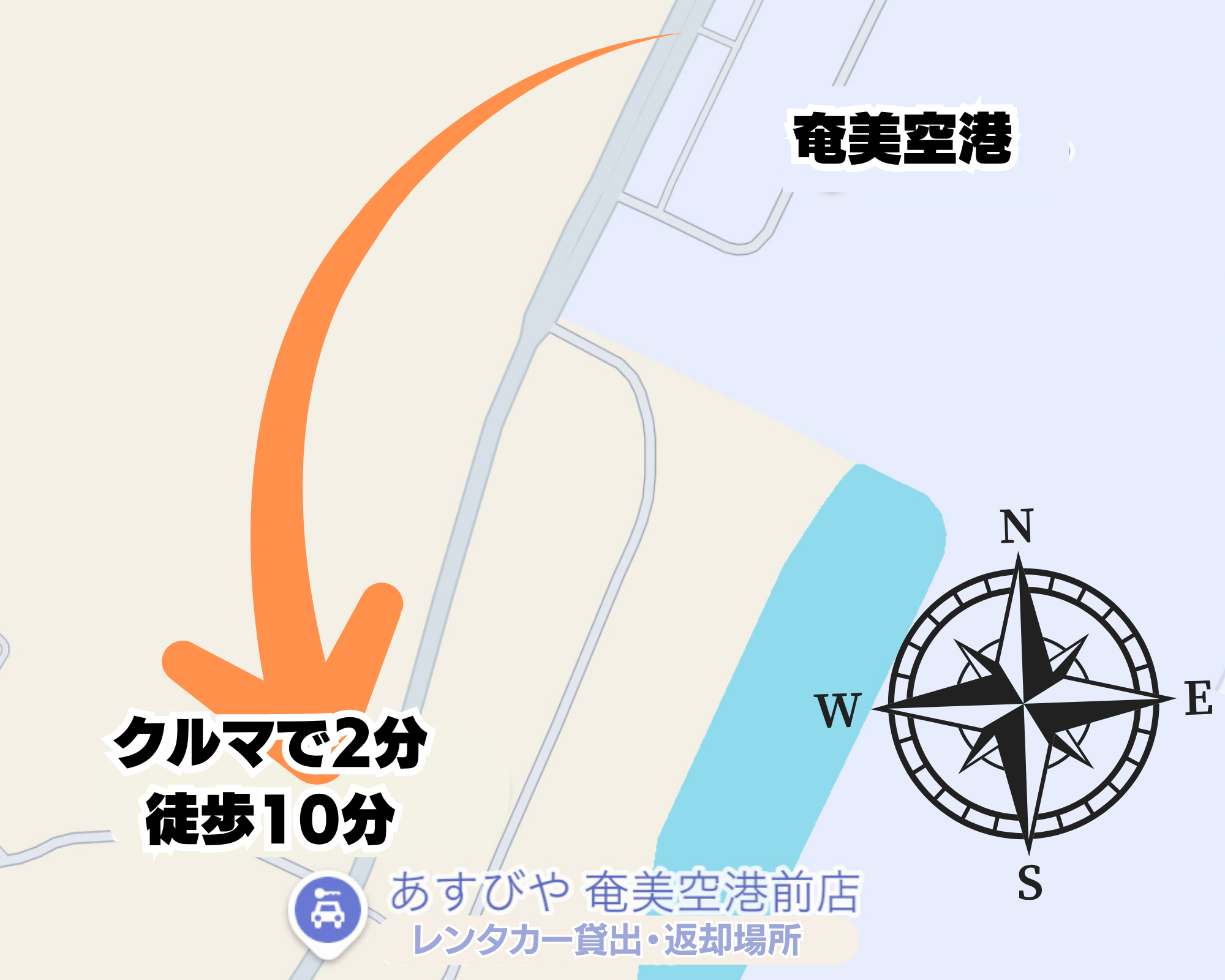 奄美空港からクルマで2分(徒歩の場合は10分)